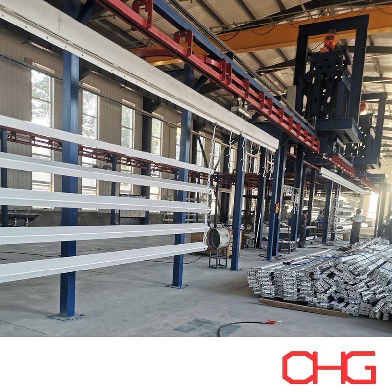 Ta linia do malowania proszkowego jest idealnie dopasowana do profili aluminiowych o różnych rozmiarach i kształtach. Wykorzystując system przenośników napowietrznych, linia ułatwia ręczne załadunek i rozładunek części, zapewniając elastyczność i łatwość obsługi.