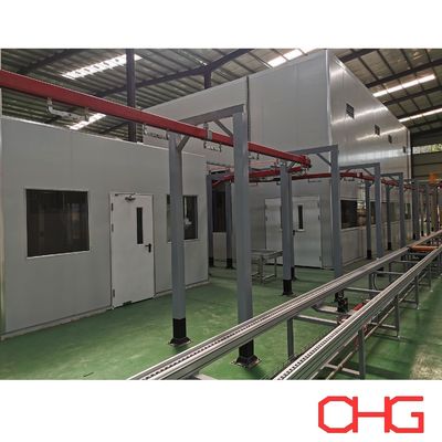 W sekcji wstępnej obróbki wykorzystuje się system przenośnika naziemnego typu skid dla stabilnego transportu ciężkich elementów szafy,podczas gdy sekcje rozpylania proszku i utwardzania przyjmują system przenośnika powietrznego pracujący z stałą prędkością w celu zapewnienia jednolitości powłoki i efektywności produkcji.